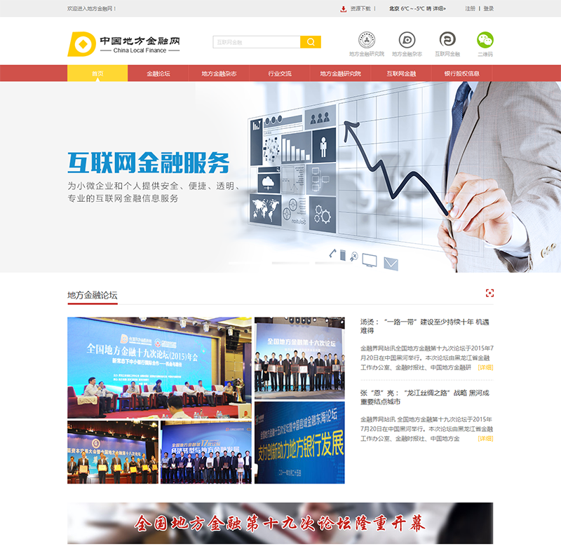 恭祝“中國地方金融網(wǎng)”正式上線,全國地方金融論壇于1996年由湖南財經(jīng)學(xué)院地方金融研究所、《地方金融》雜志、全國城市信用社通匯聯(lián)絡(luò)網(wǎng)發(fā)起籌建,1997年10月由 全國城市信用社通匯聯(lián)絡(luò)網(wǎng)、張家界市人民政府、湖南財經(jīng)學(xué)院、中國人民銀行金融研究所在張家界市舉辦全國地方金融第一次論壇,以后每年一屆。